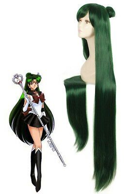 Sailor Moon Pluto Meiou Setsuna Long Straight Dark Green Hair Cosplay Full Wigs